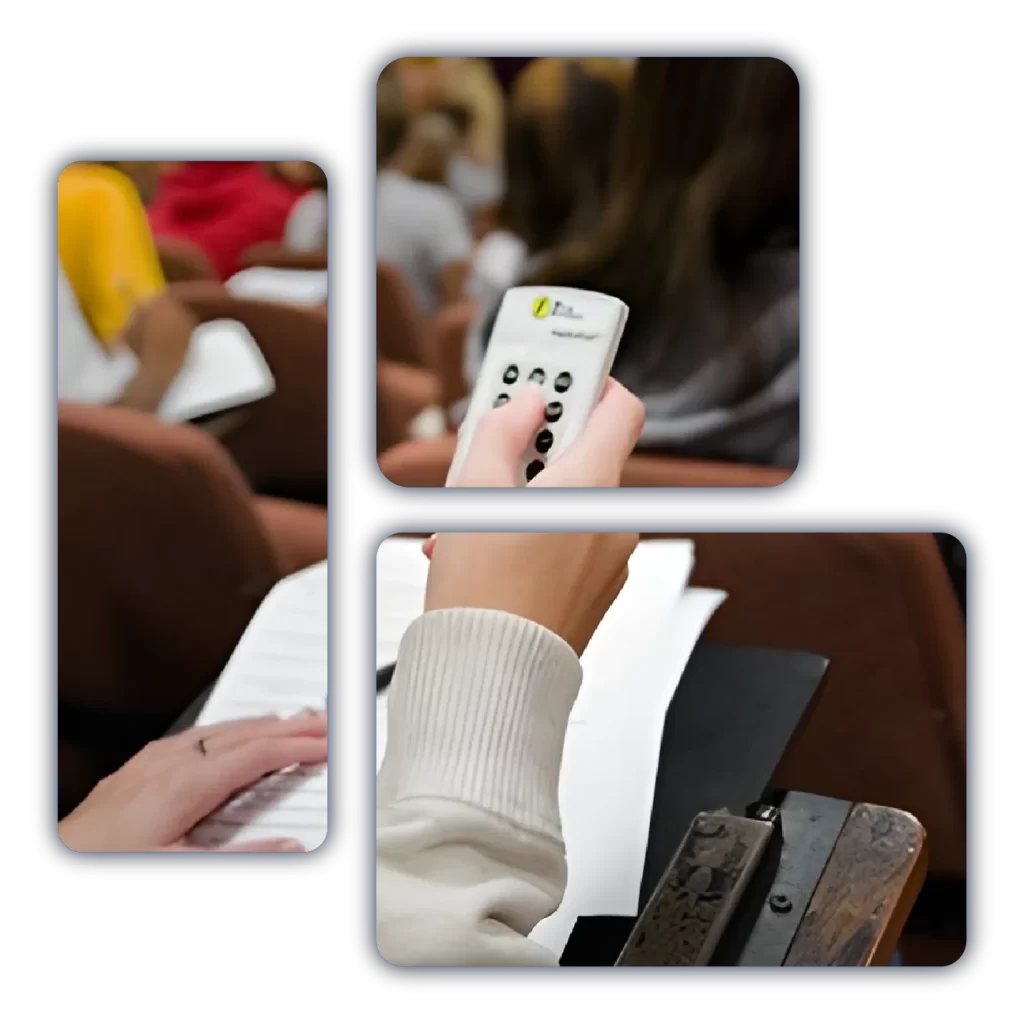 Ofrecemos desde equipos audiovisuales hasta traducción simultánea, registro y votación interactiva.